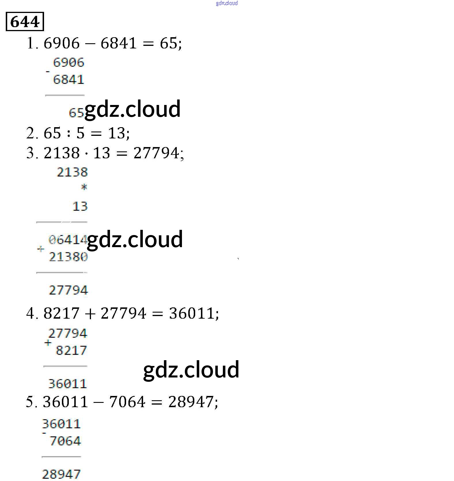 Ответ на задание 644 Учебник Математика за 5 (пятый) класс Виленкин, Жохов, Чесноков, Шварцбурд 2013