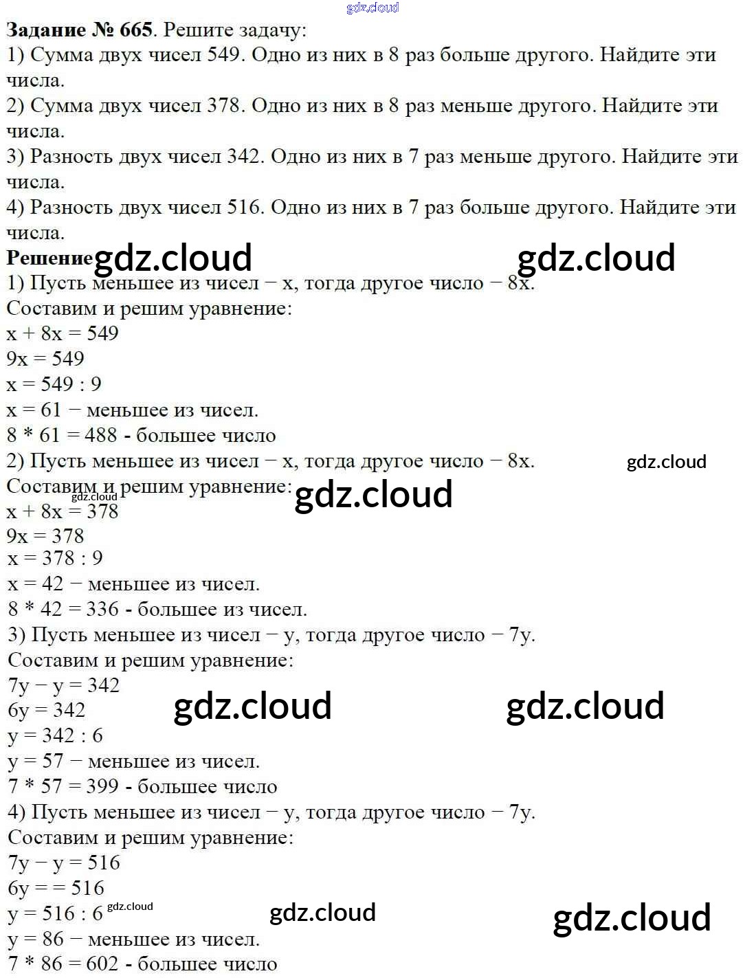 Ответ на задание 665 Учебник Математика за 5 (пятый) класс Виленкин, Жохов, Чесноков, Шварцбурд 2013