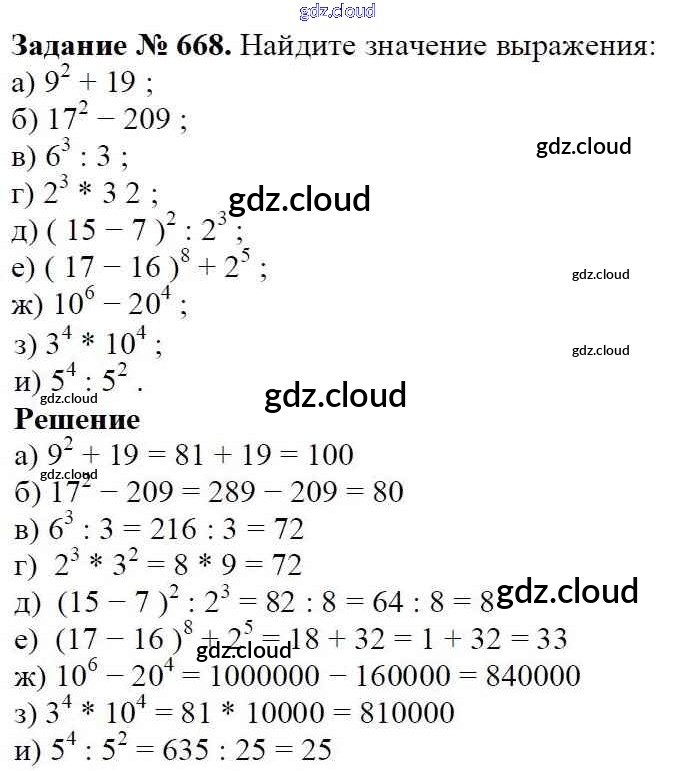 Ответ на задание 668 Учебник Математика за 5 (пятый) класс Виленкин, Жохов, Чесноков, Шварцбурд 2013