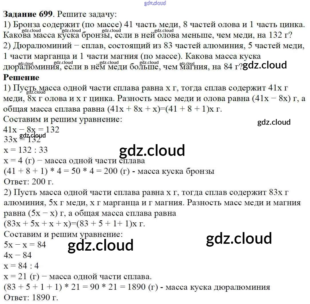 Ответ на задание 699 Учебник Математика за 5 (пятый) класс Виленкин, Жохов, Чесноков, Шварцбурд 2013