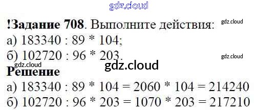 Ответ на задание 708 Учебник Математика за 5 (пятый) класс Виленкин, Жохов, Чесноков, Шварцбурд 2013