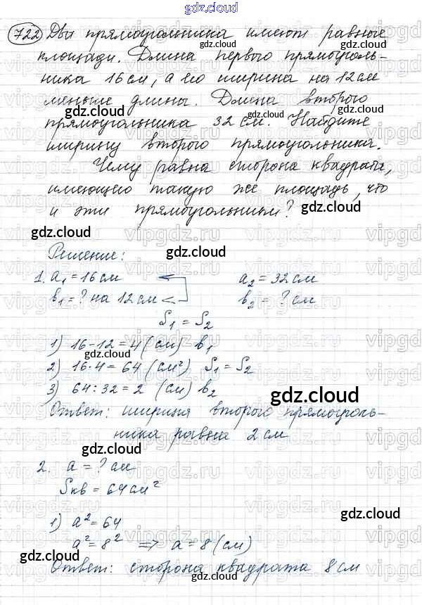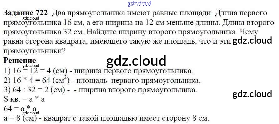 Ответ на задание 722 Учебник Математика за 5 (пятый) класс Виленкин, Жохов, Чесноков, Шварцбурд 2013