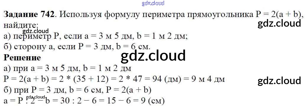 Ответ на задание 742 Учебник Математика за 5 (пятый) класс Виленкин, Жохов, Чесноков, Шварцбурд 2013