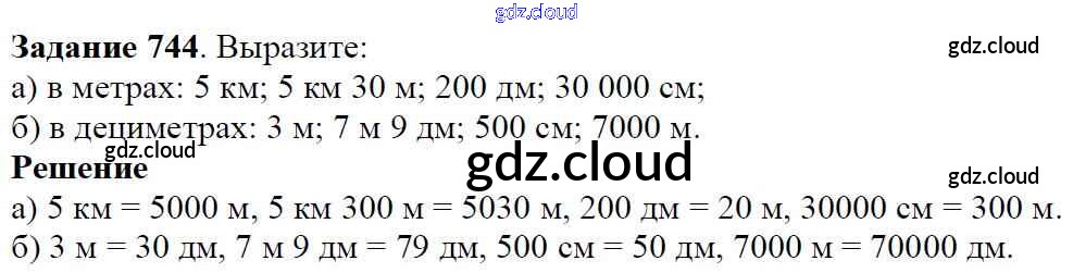 Ответ на задание 744 Учебник Математика за 5 (пятый) класс Виленкин, Жохов, Чесноков, Шварцбурд 2013