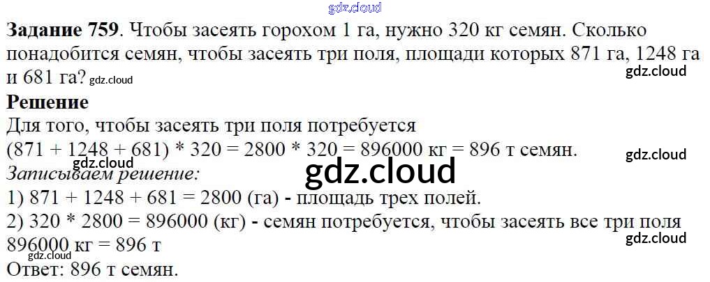 Ответ на задание 759 Учебник Математика за 5 (пятый) класс Виленкин, Жохов, Чесноков, Шварцбурд 2013