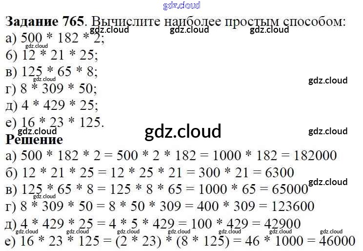 Ответ на задание 765 Учебник Математика за 5 (пятый) класс Виленкин, Жохов, Чесноков, Шварцбурд 2013