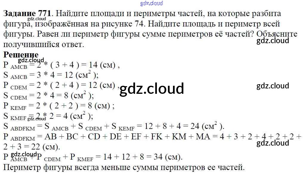 Ответ на задание 771 Учебник Математика за 5 (пятый) класс Виленкин, Жохов, Чесноков, Шварцбурд 2013