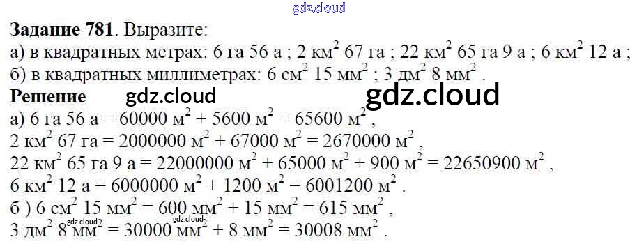 Ответ на задание 781 Учебник Математика за 5 (пятый) класс Виленкин, Жохов, Чесноков, Шварцбурд 2013
