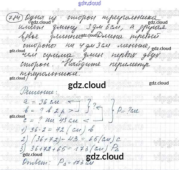 Ответ на задание 784 Учебник Математика за 5 (пятый) класс Виленкин, Жохов, Чесноков, Шварцбурд 2013