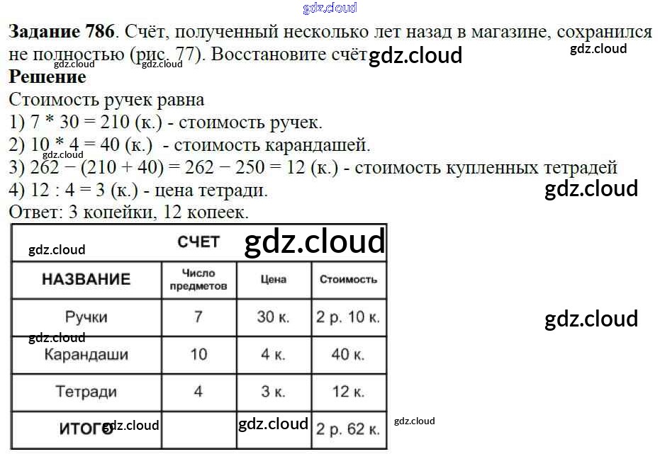 Ответ на задание 786 Учебник Математика за 5 (пятый) класс Виленкин, Жохов, Чесноков, Шварцбурд 2013