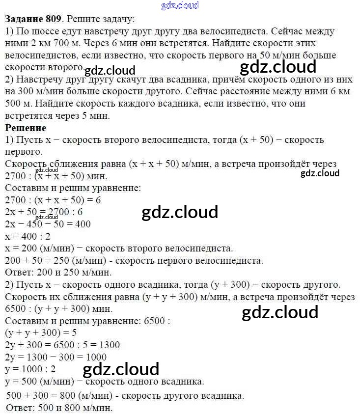 Ответ на задание 809 Учебник Математика за 5 (пятый) класс Виленкин, Жохов, Чесноков, Шварцбурд 2013