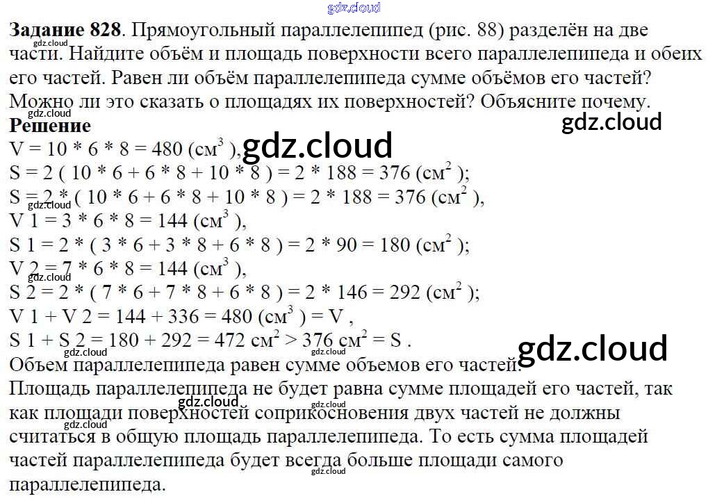 Ответ на задание 828 Учебник Математика за 5 (пятый) класс Виленкин, Жохов, Чесноков, Шварцбурд 2013