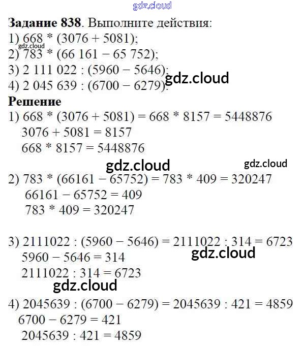 Ответ на задание 838 Учебник Математика за 5 (пятый) класс Виленкин, Жохов, Чесноков, Шварцбурд 2013