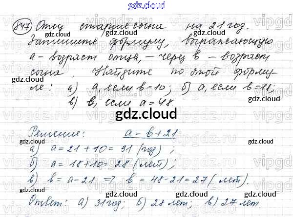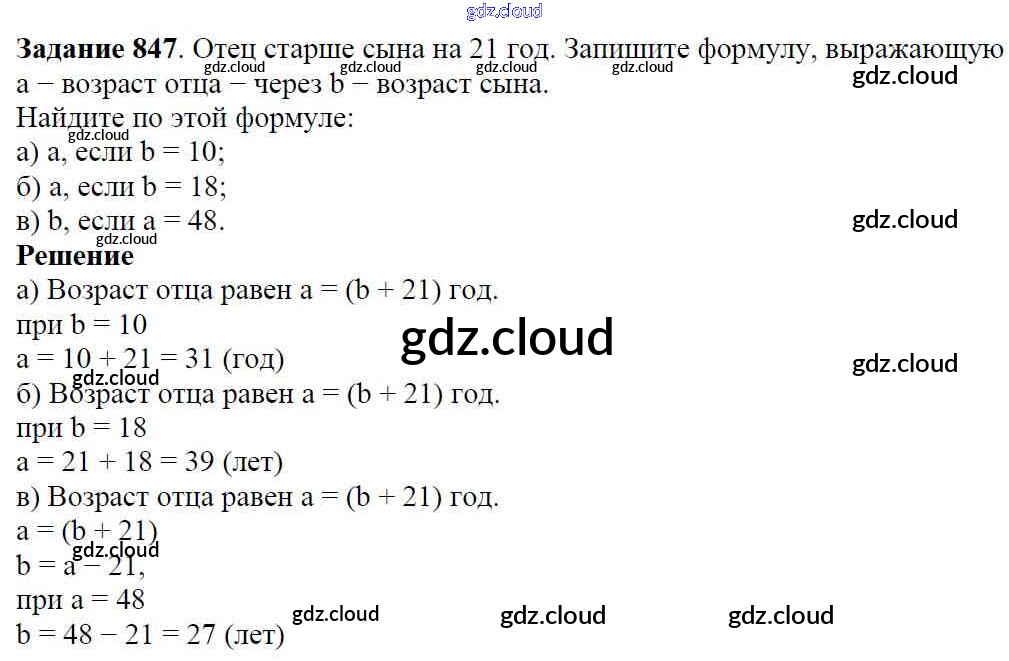 Ответ на задание 847 Учебник Математика за 5 (пятый) класс Виленкин, Жохов, Чесноков, Шварцбурд 2013