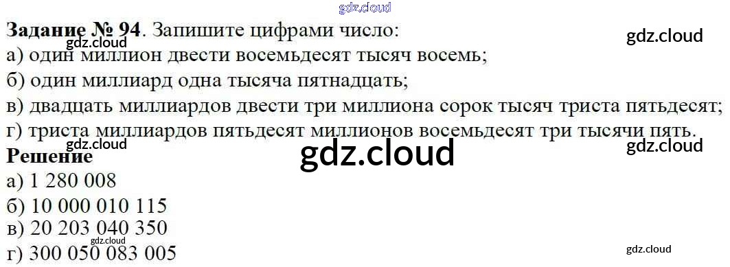 Ответ на задание 94 Учебник Математика за 5 (пятый) класс Виленкин, Жохов, Чесноков, Шварцбурд 2013