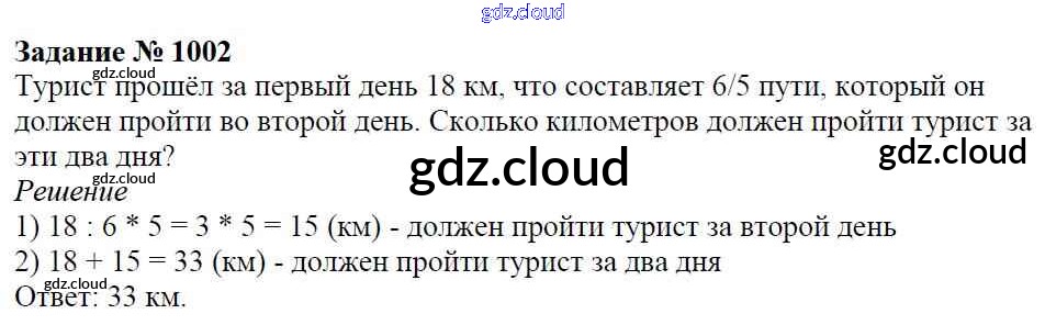 Ответ на задание 1002 Учебник Математика за 5 (пятый) класс Виленкин, Жохов, Чесноков, Шварцбурд 2013