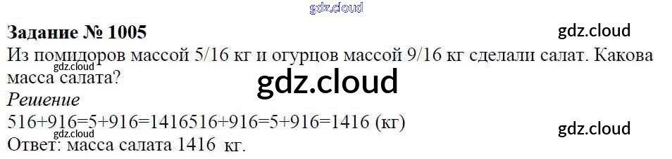 Ответ на задание 1005 Учебник Математика за 5 (пятый) класс Виленкин, Жохов, Чесноков, Шварцбурд 2013