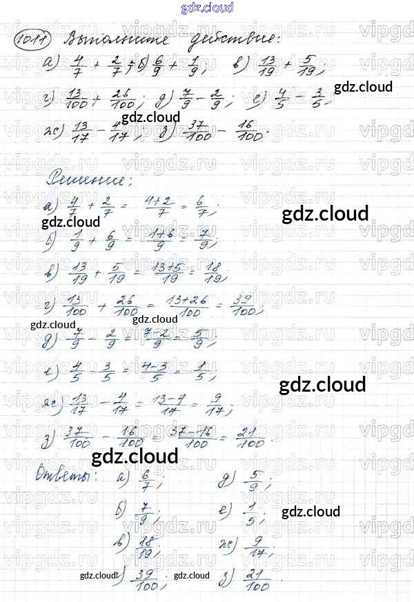 Ответ на задание 1011 Учебник Математика за 5 (пятый) класс Виленкин, Жохов, Чесноков, Шварцбурд 2013