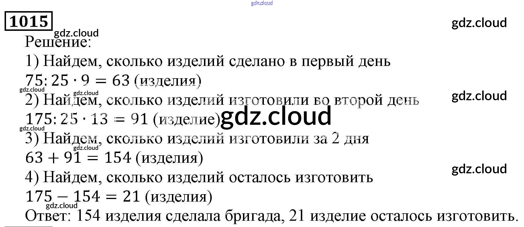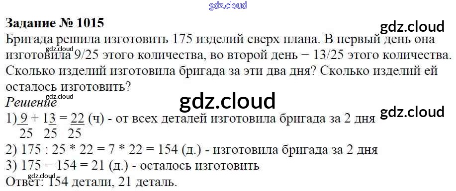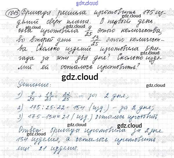 Ответ на задание 1015 Учебник Математика за 5 (пятый) класс Виленкин, Жохов, Чесноков, Шварцбурд 2013