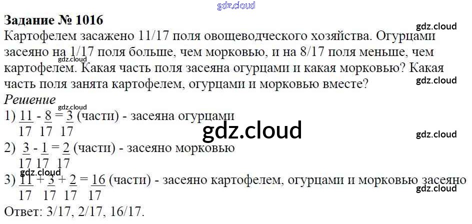 Ответ на задание 1016 Учебник Математика за 5 (пятый) класс Виленкин, Жохов, Чесноков, Шварцбурд 2013