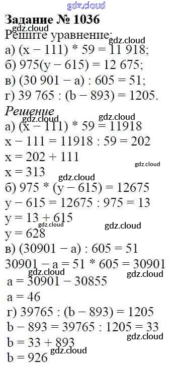 Ответ на задание 1036 Учебник Математика за 5 (пятый) класс Виленкин, Жохов, Чесноков, Шварцбурд 2013