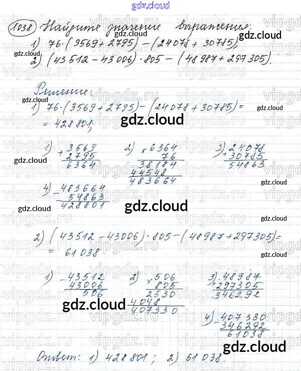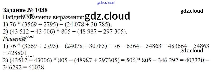 Ответ на задание 1038 Учебник Математика за 5 (пятый) класс Виленкин, Жохов, Чесноков, Шварцбурд 2013