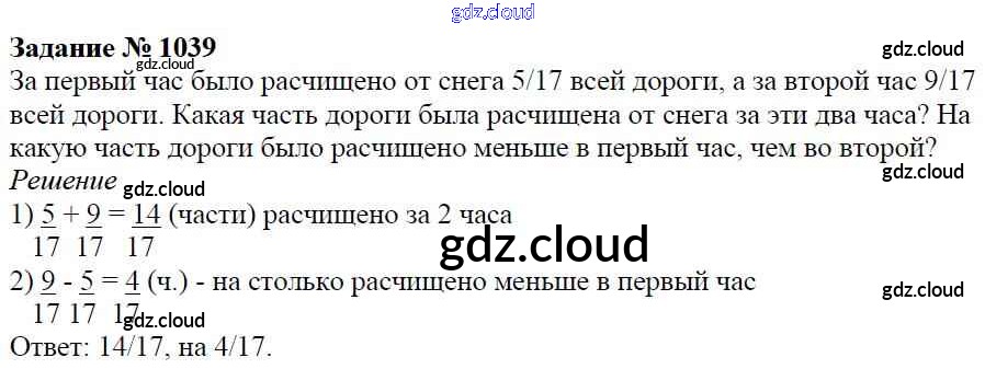 Ответ на задание 1039 Учебник Математика за 5 (пятый) класс Виленкин, Жохов, Чесноков, Шварцбурд 2013