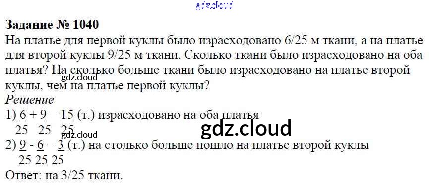 Ответ на задание 1040 Учебник Математика за 5 (пятый) класс Виленкин, Жохов, Чесноков, Шварцбурд 2013