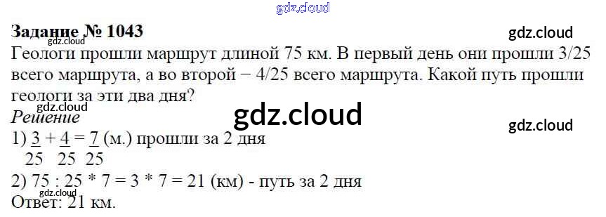 Ответ на задание 1043 Учебник Математика за 5 (пятый) класс Виленкин, Жохов, Чесноков, Шварцбурд 2013