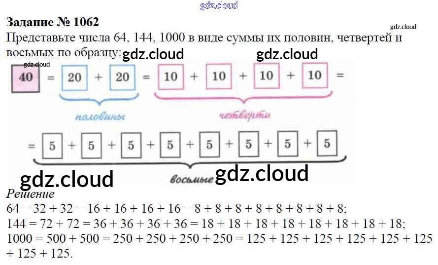 Ответ на задание 1062 Учебник Математика за 5 (пятый) класс Виленкин, Жохов, Чесноков, Шварцбурд 2013