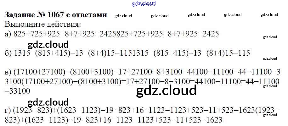 Ответ на задание 1067 Учебник Математика за 5 (пятый) класс Виленкин, Жохов, Чесноков, Шварцбурд 2013
