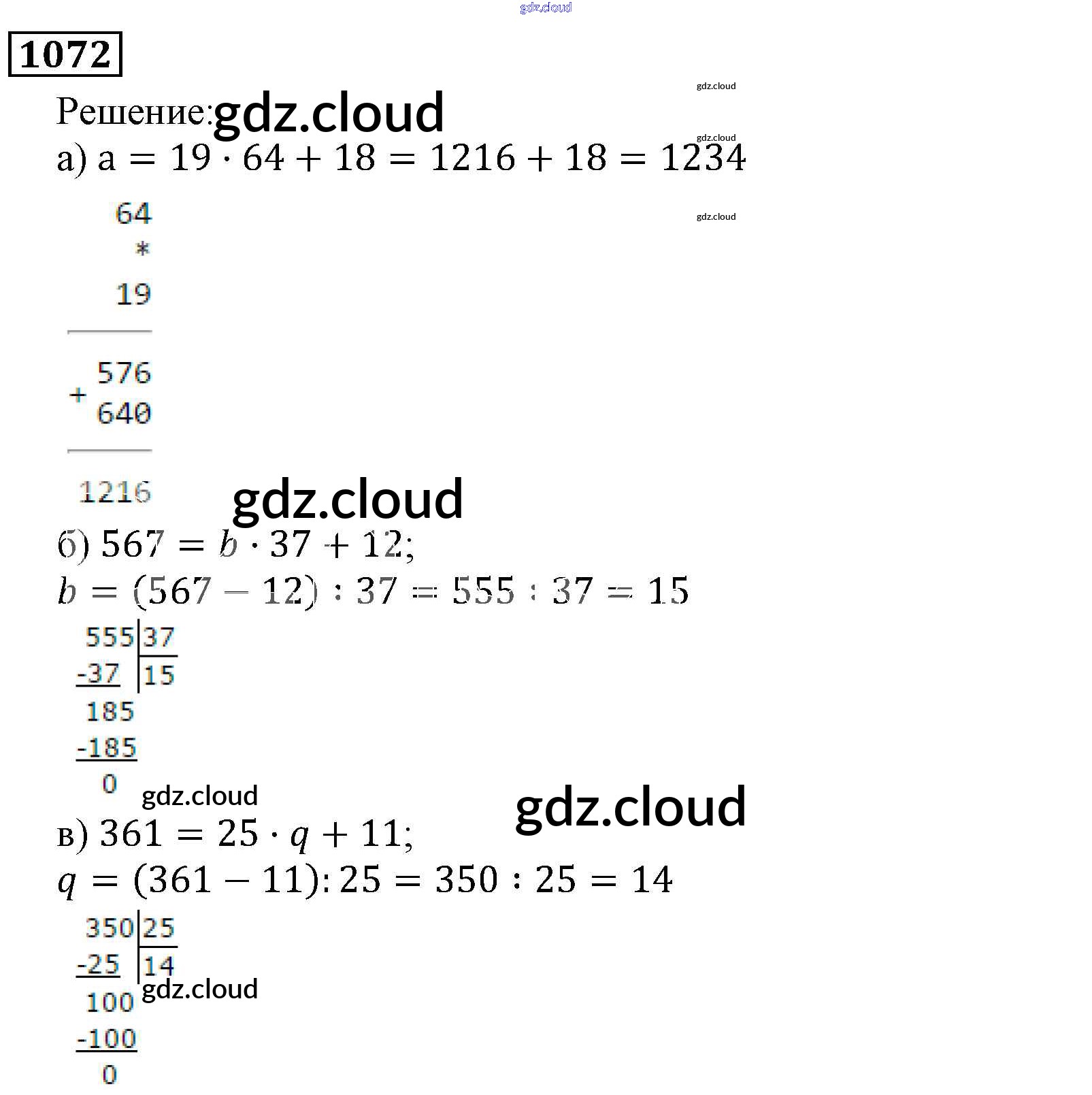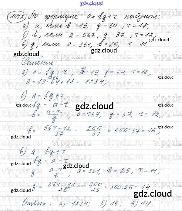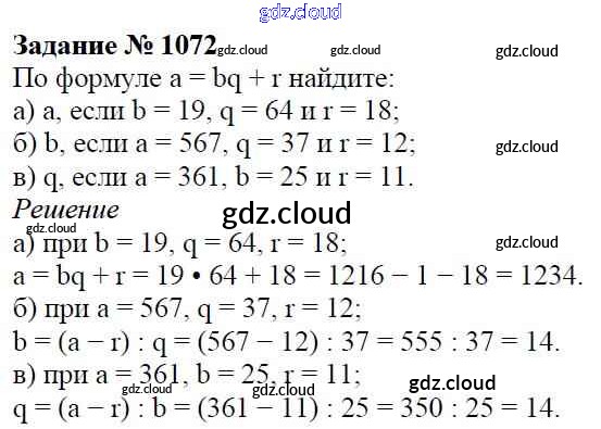 Ответ на задание 1072 Учебник Математика за 5 (пятый) класс Виленкин, Жохов, Чесноков, Шварцбурд 2013