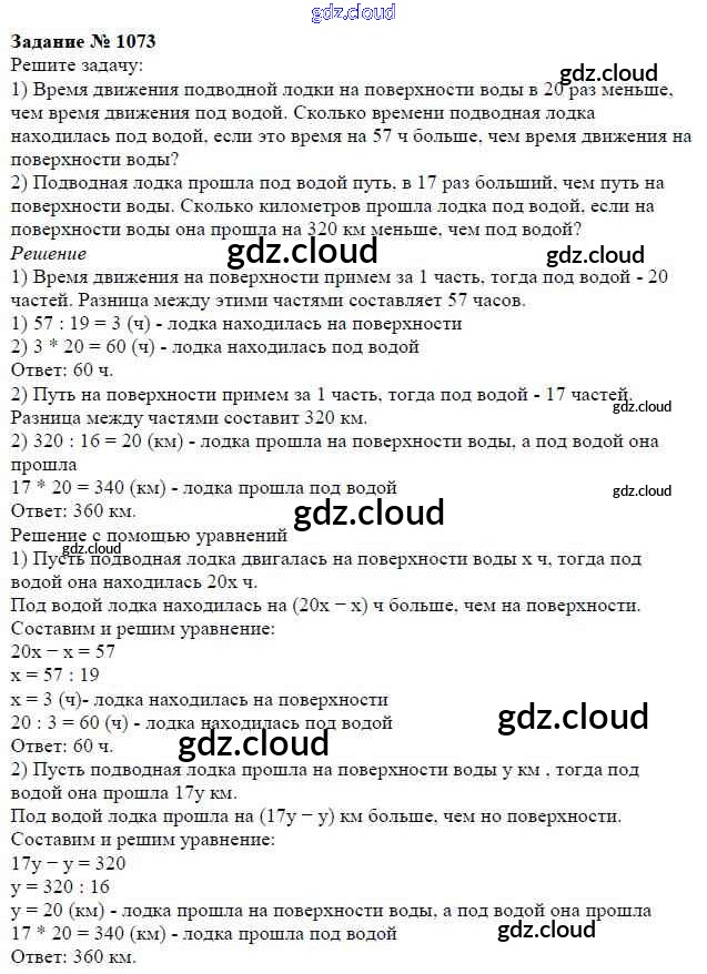 Ответ на задание 1073 Учебник Математика за 5 (пятый) класс Виленкин, Жохов, Чесноков, Шварцбурд 2013