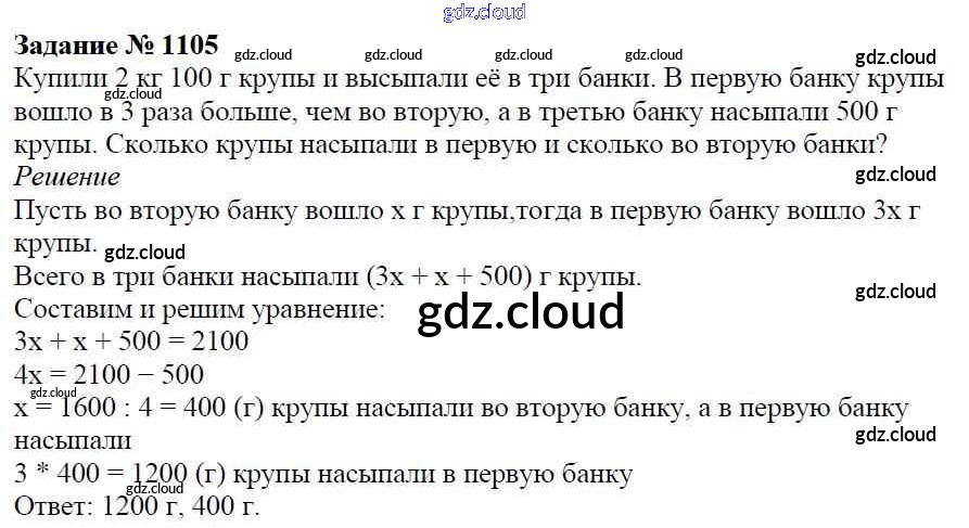 Ответ на задание 1105 Учебник Математика за 5 (пятый) класс Виленкин, Жохов, Чесноков, Шварцбурд 2013