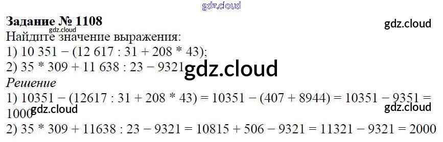 Ответ на задание 1108 Учебник Математика за 5 (пятый) класс Виленкин, Жохов, Чесноков, Шварцбурд 2013