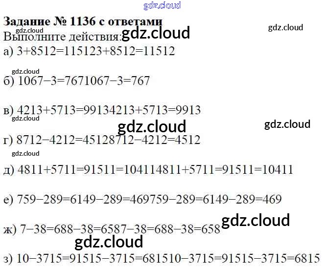 Ответ на задание 1136 Учебник Математика за 5 (пятый) класс Виленкин, Жохов, Чесноков, Шварцбурд 2013