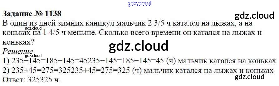 Ответ на задание 1138 Учебник Математика за 5 (пятый) класс Виленкин, Жохов, Чесноков, Шварцбурд 2013