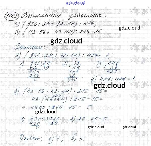 Ответ на задание 1143 Учебник Математика за 5 (пятый) класс Виленкин, Жохов, Чесноков, Шварцбурд 2013