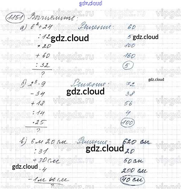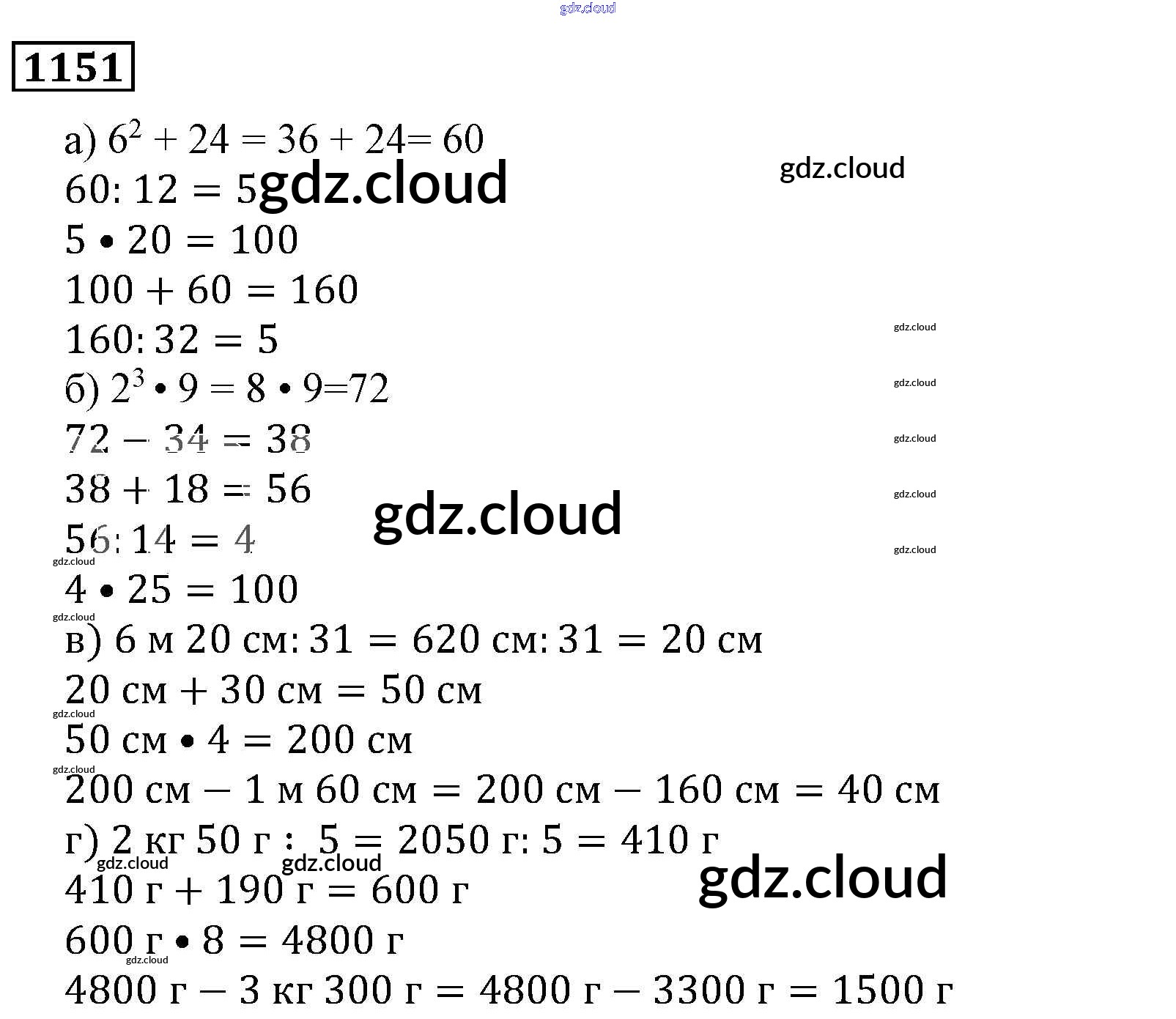 Ответ на задание 1151 Учебник Математика за 5 (пятый) класс Виленкин, Жохов, Чесноков, Шварцбурд 2013