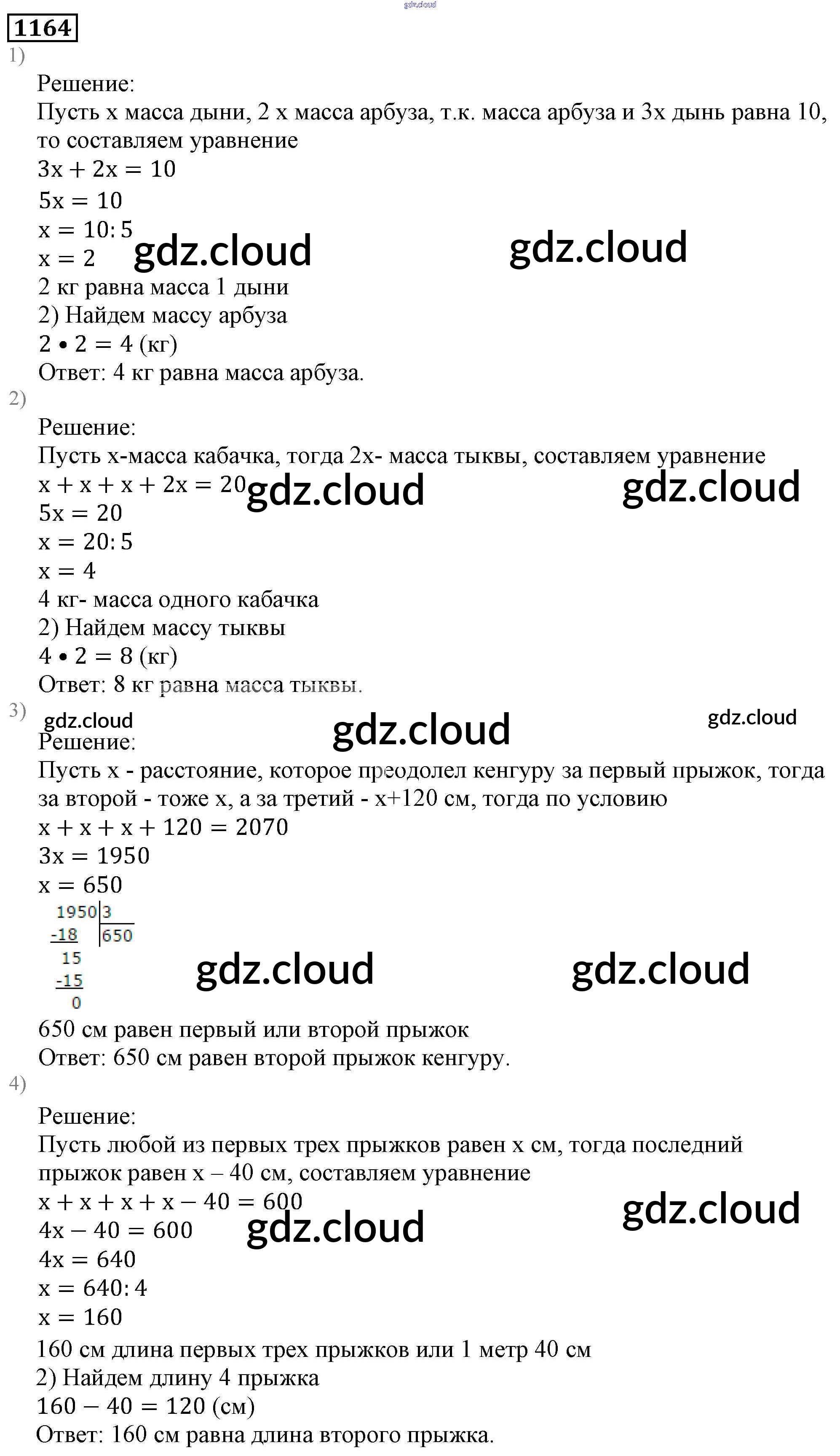 Ответ на задание 1164 Учебник Математика за 5 (пятый) класс Виленкин, Жохов, Чесноков, Шварцбурд 2013