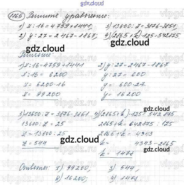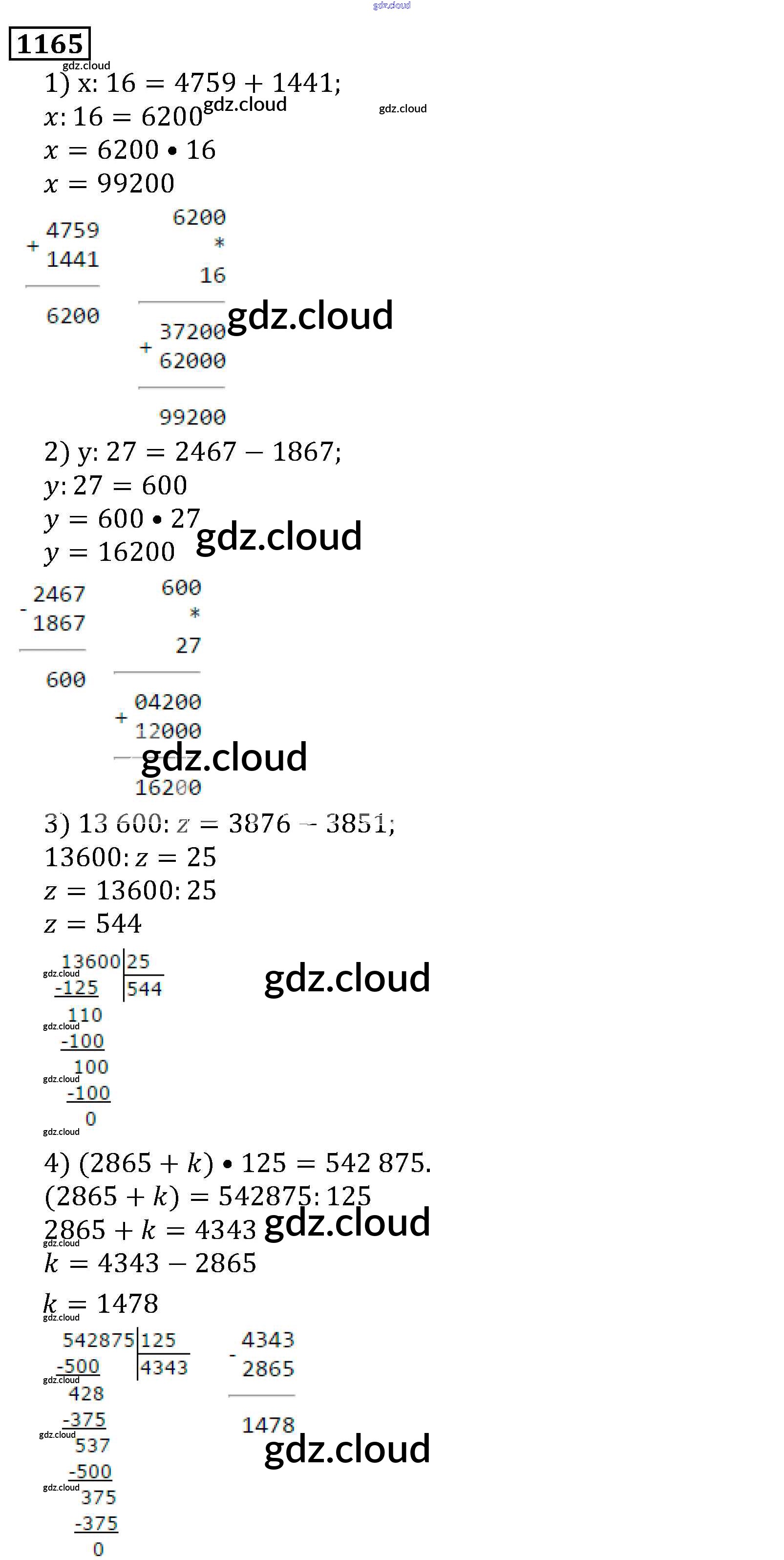 Ответ на задание 1165 Учебник Математика за 5 (пятый) класс Виленкин, Жохов, Чесноков, Шварцбурд 2013