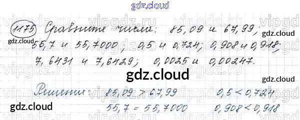 Ответ на задание 1175 Учебник Математика за 5 (пятый) класс Виленкин, Жохов, Чесноков, Шварцбурд 2013