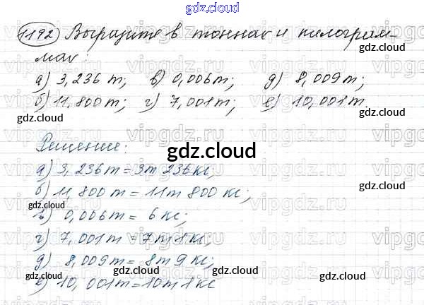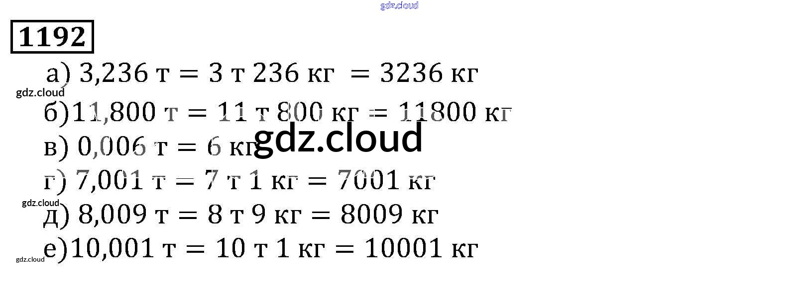 Ответ на задание 1192 Учебник Математика за 5 (пятый) класс Виленкин, Жохов, Чесноков, Шварцбурд 2013