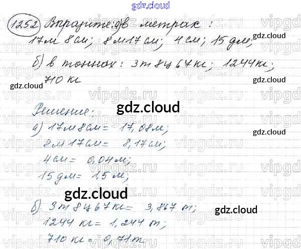 Ответ на задание 1252 Учебник Математика за 5 (пятый) класс Виленкин, Жохов, Чесноков, Шварцбурд 2013