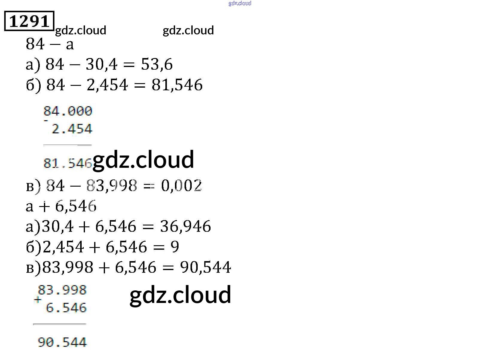 Ответ на задание 1291 Учебник Математика за 5 (пятый) класс Виленкин, Жохов, Чесноков, Шварцбурд 2013