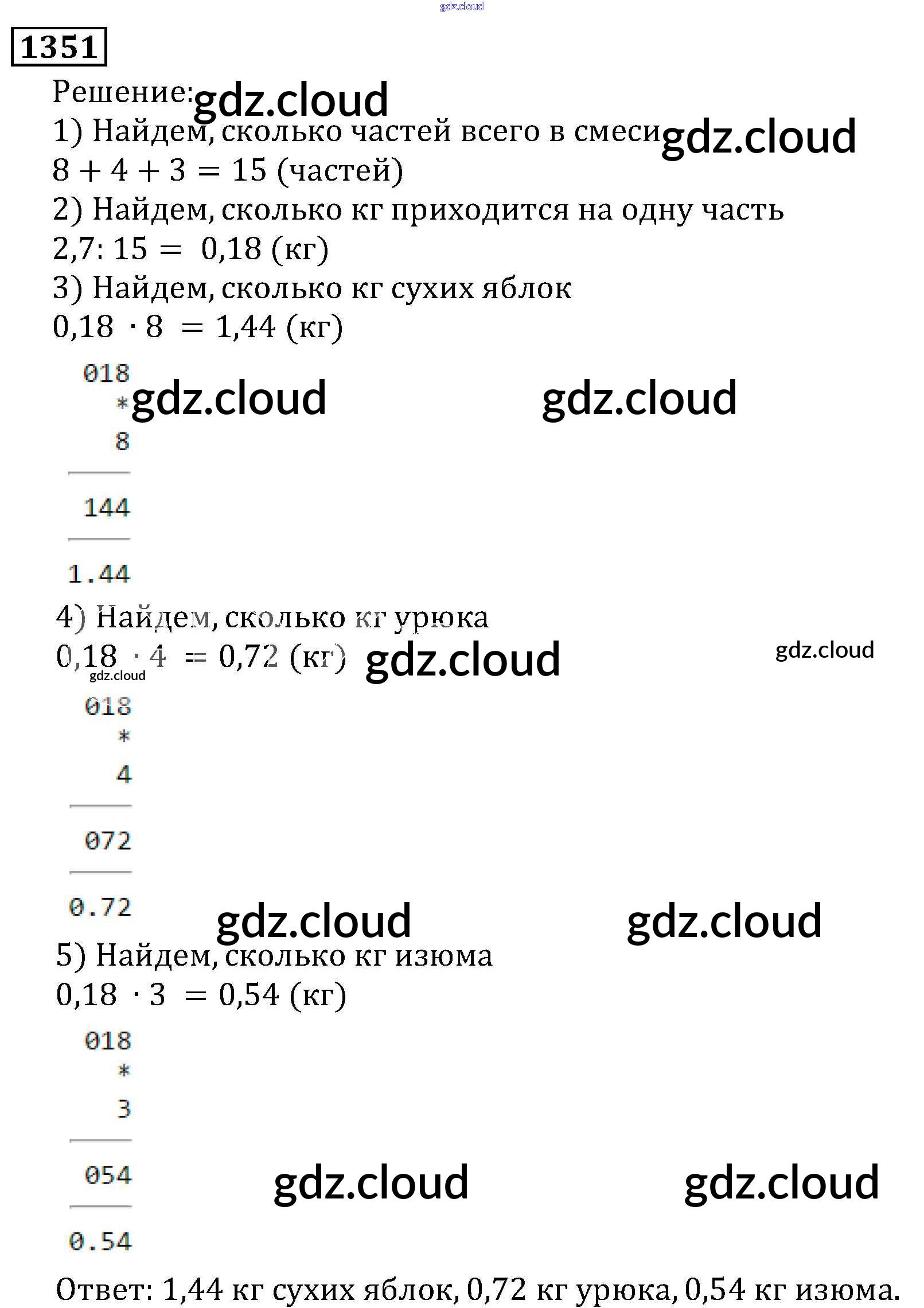 Ответ на задание 1351 Учебник Математика за 5 (пятый) класс Виленкин, Жохов, Чесноков, Шварцбурд 2013