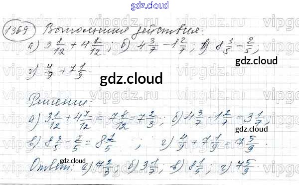Ответ на задание 1369 Учебник Математика за 5 (пятый) класс Виленкин, Жохов, Чесноков, Шварцбурд 2013