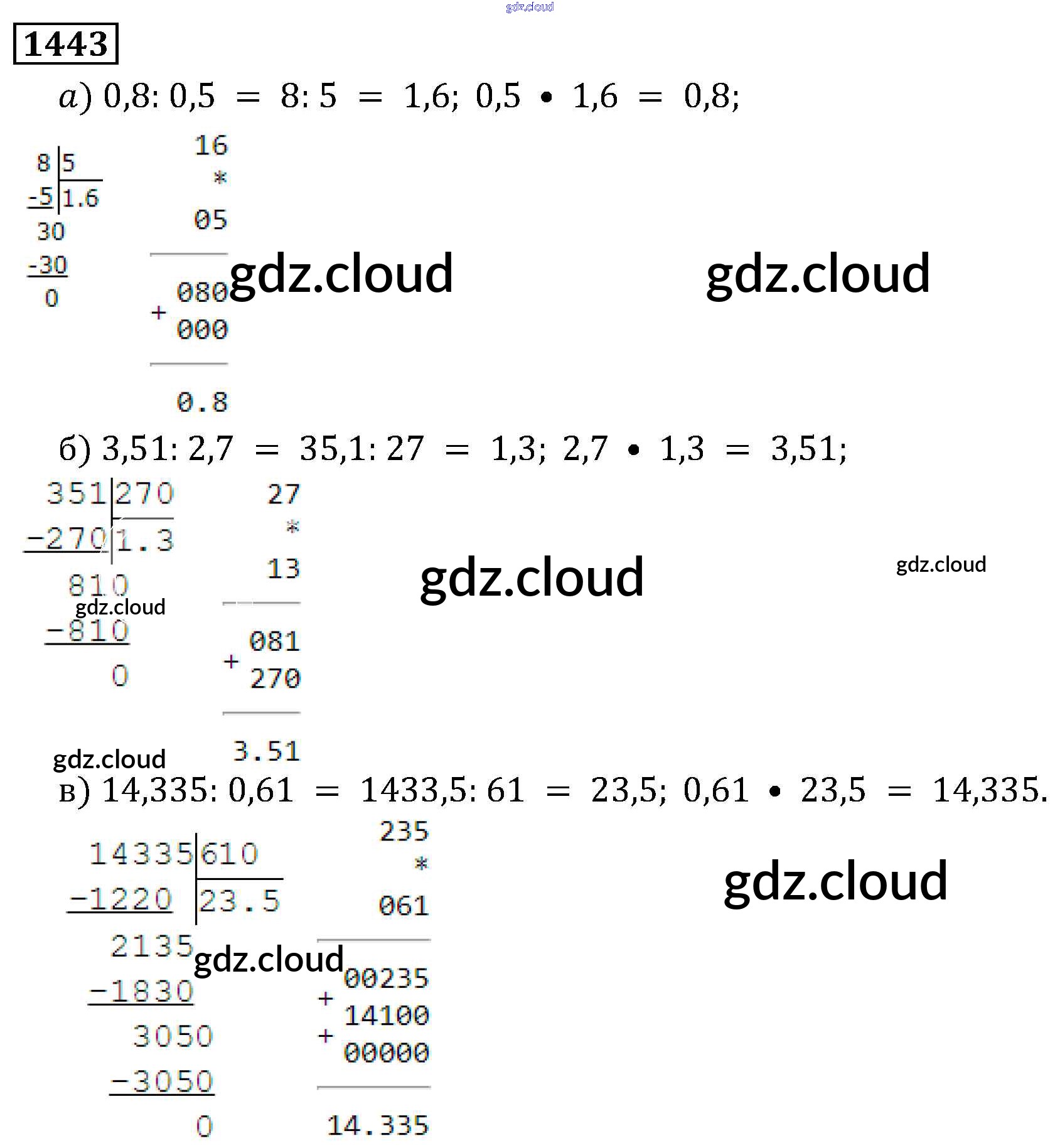 Ответ на задание 1443 Учебник Математика за 5 (пятый) класс Виленкин, Жохов, Чесноков, Шварцбурд 2013