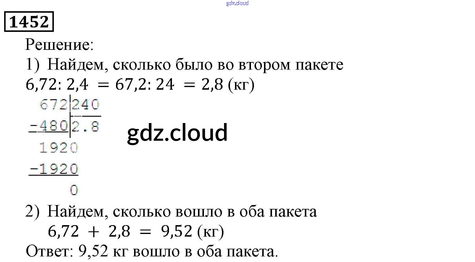 Ответ на задание 1452 Учебник Математика за 5 (пятый) класс Виленкин, Жохов, Чесноков, Шварцбурд 2013