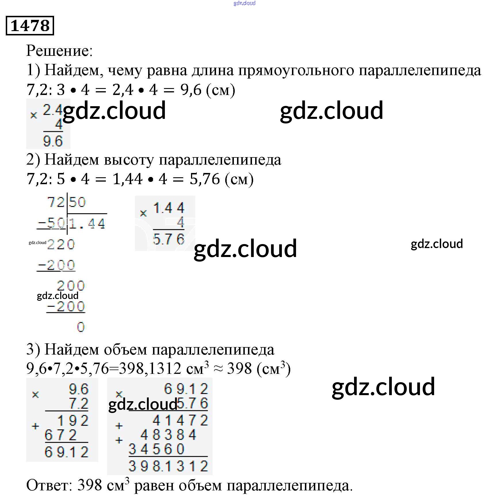 Ответ на задание 1478 Учебник Математика за 5 (пятый) класс Виленкин, Жохов, Чесноков, Шварцбурд 2013